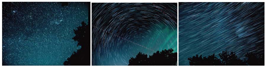 星が雪のように降り、水のように流れ、回転する作者のもったイメージを比較明合成を有効に用いて見事に表現しています。