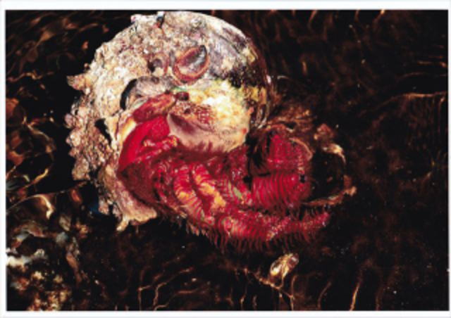 ヤドカリを写実的に捉えながら、非現実的かつ強烈な色と陰影で個性的な作品を作っている。