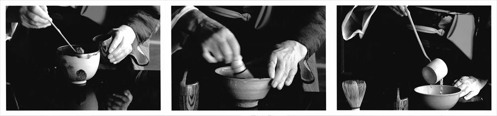 抹茶を茶碗に入れ、お湯を注ぎ、茶筅で点てる手順を、音をテーマに印象的に写し撮りました。